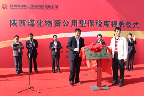 陜煤化集團總經(jīng)理嚴(yán)廣勞和西安海關(guān)關(guān)長徐蔚葳共同為保稅庫揭牌