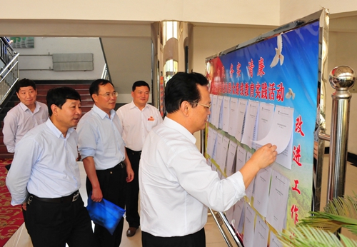 馬富元一行走進象山礦井,沿途參觀了群眾路線教育實踐活動剪影,并認(rèn)真查看了黨員干部手寫的心得體會,了解了職工的就餐情況。