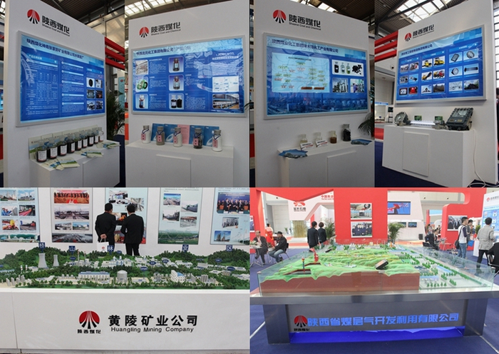 陜煤化集團(tuán)共組織黃陵礦業(yè)公司、神南張家峁礦業(yè)公司、神木煤化工公司、北元化工公司、煤層氣開(kāi)發(fā)公司、西安重裝集團(tuán)、技術(shù)研究院等7家下屬企業(yè)進(jìn)行參展,展區(qū)面積達(dá)300多平方米,通過(guò)視頻、圖片、沙盤(pán)模型等形式對(duì)集團(tuán)公司近年來(lái)發(fā)展成就進(jìn)行了全方位宣傳,重點(diǎn)展示了在科技研發(fā)、煤化工技術(shù)應(yīng)用、煤層氣開(kāi)發(fā)利用等方面的先進(jìn)技術(shù)和主要成果,展現(xiàn)出陜煤化集團(tuán)發(fā)展綠色低碳經(jīng)濟(jì),打造節(jié)能環(huán)保企業(yè)的決心和能力,也充分體現(xiàn)了集團(tuán)公司“崇尚自然,追求和諧”環(huán)保發(fā)展理念。