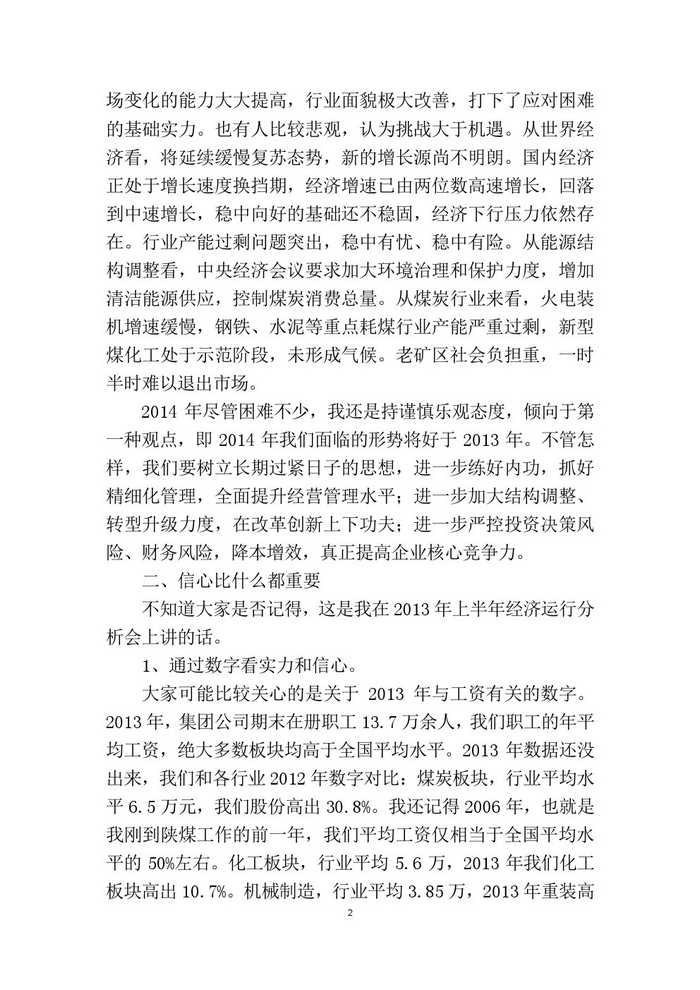 上一條:慰 問 信 下一條:總經(jīng)理楊照乾在集團(tuán)公司2014年工作會暨一屆四次職代會上的報告