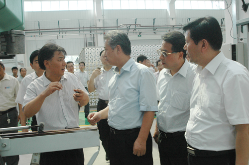 下午3時許,陜煤化集團公司黨委書記、董事長華煒一行冒著酷暑,在西安重裝集團公司黨委書記、董事長王增強,總經(jīng)理李德鎖的陪同下,驅(qū)車來到西安重裝渭南橡膠制品公司、西安重裝渭南光電公司和渭化編織袋公司檢查指導工作。渭南市委書記徐新榮、副市長劉新興和渭南高新區(qū)管委會黨工委書記周慶文等領(lǐng)導陪同參加了這次活動。
