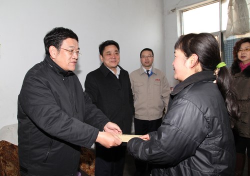 集團(tuán)公司董事吳繼亮到蒲白礦區(qū)慰問生活困難的職工遺屬。