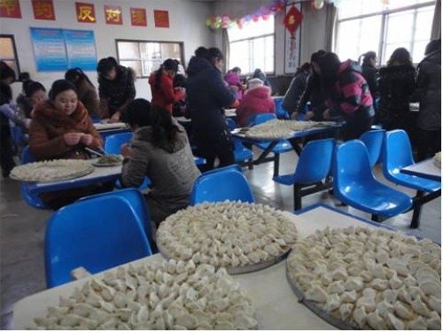 陜煤建司女工家屬協(xié)管安全員大年初一在井口為一線礦工送平安餃子