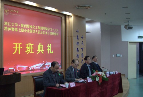 近日,陜西煤業(yè)化工集團(tuán)公司學(xué)習(xí)貫徹黨的十八大精神暨第七期領(lǐng)導(dǎo)人員及后備干部研修班在浙江大學(xué)舉辦。參加本次研修班的學(xué)員主要來自二級單位班子成員、后備干部,共46人。浙大公共管理學(xué)院黨委書記包鴻軍和集團(tuán)公司黨委副書記馬富元,機(jī)關(guān)黨委書記、黨群工作部部長夏迎廣參加了開班儀式。