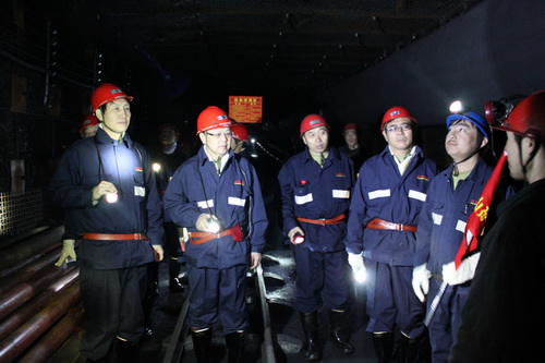 宋老虎在王世斌陪同下在掘進(jìn)工作面檢查精細(xì)化管理
