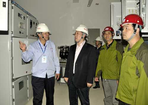 集團公司董事長、黨委書記華煒在項目330總變電站了解情況