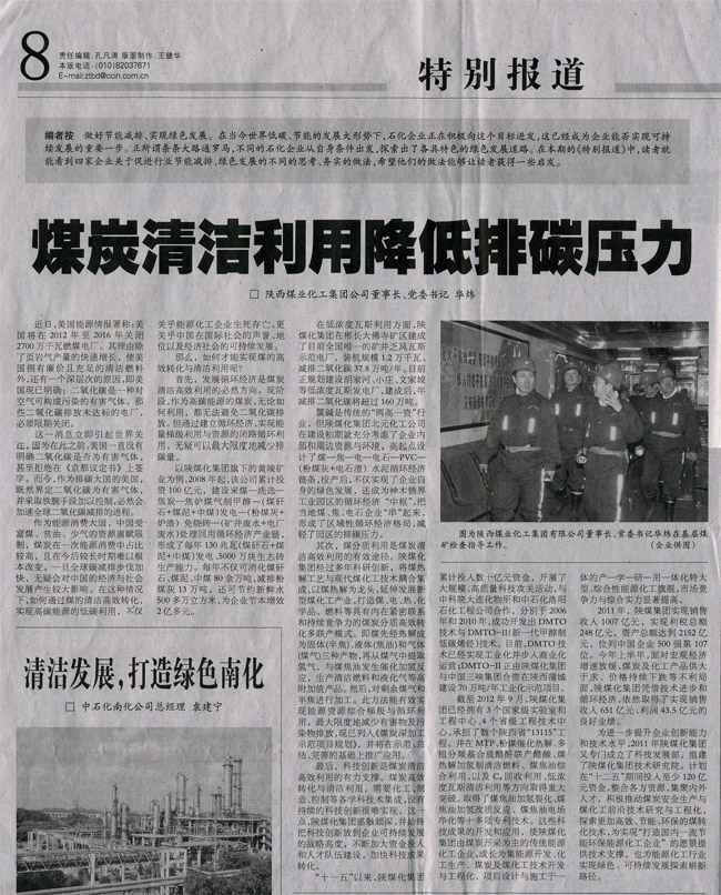 近日,新華社《陜西領導參考》、中國能源報、中國煤炭報、中國化工報等重要媒體刊發(fā)了陜西煤業(yè)化工集團公司董事長、黨委書記華煒的署名文章《借煤炭清潔利用破解排碳壓力》。