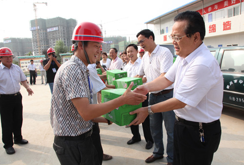 炎炎夏日,驕陽似火,奮戰(zhàn)在基層一線的廣大干部職工牽動著陜西煤業(yè)化工集團公司領(lǐng)導們的心。近日,由集團公司黨委副書記、工會主席馬富元帶隊,集團公司工會選擇到夏季高溫工作條件最艱苦的陜鋼集團、建設集團一線,開展了“送清涼”慰問職工活動。