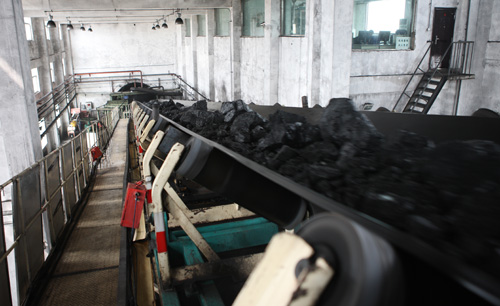 紅柳林礦業(yè)公司皮帶將優(yōu)質(zhì)煤炭運到地面裝車