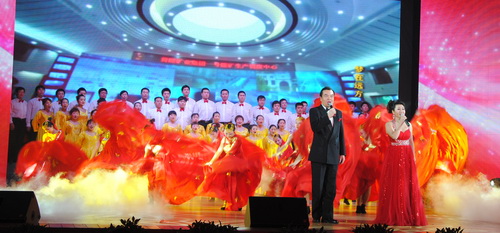 演出開始前,韓城礦業(yè)公司6名公司領導向集團公司領導及各兄弟單位職工代表和觀眾朋友拜年,祝大家龍年大吉、萬事如意!公司黨委書記、董事長王世斌致詞,他說,這是獻給集團公司及兄弟單位的一臺感恩的匯報演出,以答謝集團公司對韓城礦業(yè)公司的大力支持和兄弟單位的熱情幫助。韓城礦業(yè)公司感恩集團公司大家庭的溫暖,感恩省委省政府的關懷,感恩兄弟單位的慷慨解囊。他還展望了韓城礦業(yè)公司2012年的主要工作和未來幾年的發(fā)展前景,并表示要以優(yōu)異的成績回報集團公司的厚愛和大家的關懷。