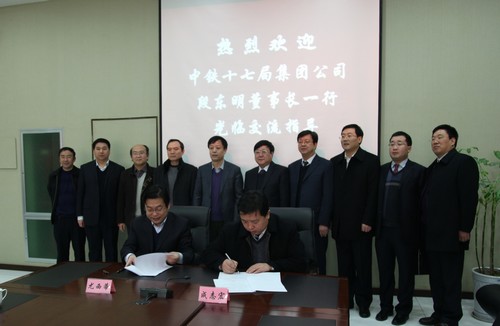 12月28日上午,中鐵十七局集團(tuán)公司董事長(zhǎng)、黨委書記段東明,副總經(jīng)理成志宏等一行到陜西煤業(yè)化工集團(tuán)公司進(jìn)行走訪座談,雙方簽署了《西安北客站-機(jī)場(chǎng)軌道交通項(xiàng)目合作備忘錄》。陜煤化集團(tuán)董事長(zhǎng)、黨委書記華煒,副總經(jīng)理尤西蒂,總會(huì)計(jì)師趙福堂,陜西省鐵路投資集團(tuán)董事長(zhǎng)劉強(qiáng),總經(jīng)理李占先及集團(tuán)公司機(jī)關(guān)有關(guān)部門負(fù)責(zé)人、陜西省鐵路投資集團(tuán)有關(guān)人員熱情接待了段東明一行。