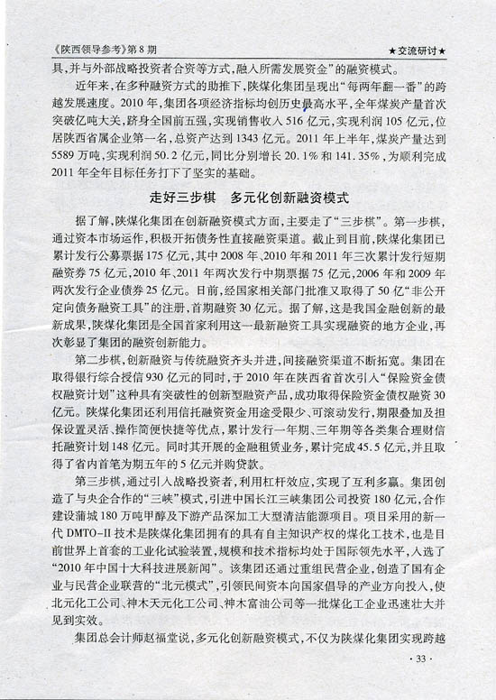 上一條:中國(guó)煤炭工業(yè)協(xié)會(huì)副會(huì)長(zhǎng)趙岸青到陜煤化集團(tuán)調(diào)研 下一條:陜西領(lǐng)導(dǎo)參考:陜煤化集團(tuán)創(chuàng)新融資模式向世界500強(qiáng)邁進(jìn)