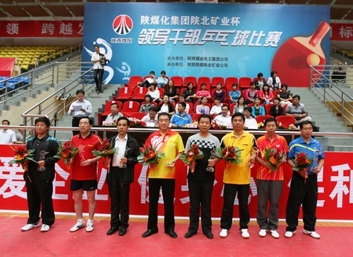 陜西煤業(yè)化工集團(tuán)公司“陜北礦業(yè)杯”領(lǐng)導(dǎo)干部乒乓球比賽經(jīng)過三天緊張激烈的角逐,8月24日上午勝利閉幕。集團(tuán)公司董事高峰,集團(tuán)公司所屬企業(yè)有關(guān)領(lǐng)導(dǎo)以及參加比賽的23支代表隊、103名處局級運動員參加了閉幕式。