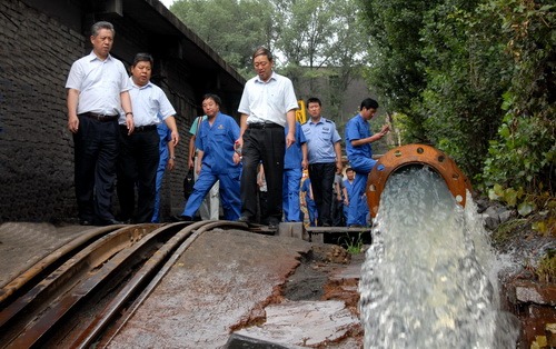 華煒董事長在桑樹坪礦5號、6號井排水口了解情況。