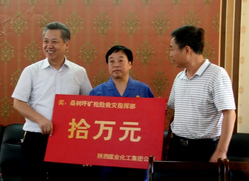 集團公司對在桑樹坪礦應急指揮機構進行通報表彰,并獎勵10萬元。