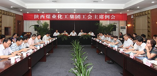 7月19日,陜西煤業(yè)化工集團(tuán)公司召開工會(huì)主席例會(huì),認(rèn)真貫徹落實(shí)胡錦濤總書記在建黨90周年大會(huì)上的講話精神,總結(jié)回顧上半年工作,部署下半年重點(diǎn)工作。集團(tuán)公司黨委副書記、工會(huì)主席馬富元出席會(huì)議并講話,集團(tuán)公司工會(huì)各業(yè)務(wù)負(fù)責(zé)人、各基層單位工會(huì)主席、副主席及女工委主任參加了會(huì)議。