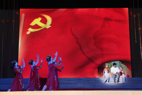 表彰大會(huì)結(jié)束后,所有參會(huì)人員一起觀看了,由集團(tuán)公司廣大職工自編自演的主題為《唱支山歌給黨聽》的慶祝中國共產(chǎn)黨成立90周年大型文藝匯演。