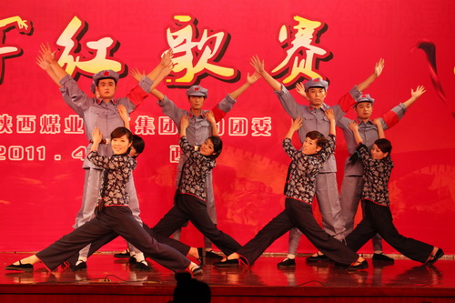 表彰會(huì)后,伴隨著一個(gè)視頻短片《大話紅歌賽》的播放,集團(tuán)公司紀(jì)念五四運(yùn)動(dòng)“運(yùn)銷杯”青年紅歌賽在輕松幽默的氛圍中拉開序幕,一個(gè)個(gè)精心打造的節(jié)目閃亮登場(chǎng),一時(shí)間高潮疊起、異彩紛呈。由黃陵礦業(yè)公司選送的大合唱《陽光礦業(yè)》,以恢弘的氣勢(shì),完美的聲線配合,唱出了當(dāng)代礦業(yè)人的豪邁與氣魄,贏得了滿堂彩;蒲白礦業(yè)公司選送的歌曲《國(guó)家》,伴以小朋友的手語舞蹈,以干凈純真的方式詮釋了“都說國(guó)很大,其實(shí)一個(gè)家”的永恒主題,深深感染了現(xiàn)場(chǎng)觀眾。運(yùn)銷集團(tuán)選送的紅歌聯(lián)唱《解放區(qū)的天》,聲樂配合得當(dāng),整體和諧有序,給人以振奮和美感;銅川礦業(yè)公司選送的《再唱山歌給黨聽》,創(chuàng)新填詞,更好地詮釋了當(dāng)代青年對(duì)于黨的無限熱愛。彬長(zhǎng)礦業(yè)公司選送的擬聲音樂小品《沒有共產(chǎn)黨就沒有新中國(guó)》,創(chuàng)造性的融入了華陰老腔等音樂元素,編排新穎,特色獨(dú)具;澄合礦業(yè)公司選送的《十送紅軍》,以情景劇的方式,唯美地展示了軍民間的魚水深情,令人動(dòng)容;北元化工公司選送的《東方紅》,將人們?cè)俅螏Щ氐郊で槿紵臍q月,重溫了那一曲激勵(lì)了一代又一代的青春誓言……活動(dòng)中還特別穿插了現(xiàn)場(chǎng)助興文藝節(jié)目,由神南礦業(yè)公司選送的魔術(shù)《手動(dòng)奇跡》,現(xiàn)場(chǎng)上演了見證奇跡的時(shí)刻,澄合礦業(yè)公司選送的小品《大話梁?!?,用極度夸張的表演,針砭時(shí)弊,頌揚(yáng)了愛情之永恒。