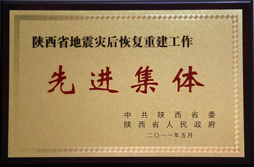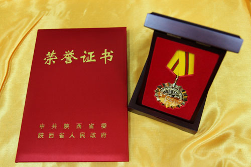 “陜西省地震災后恢復重建工作先進個人”榮譽證書和獎章