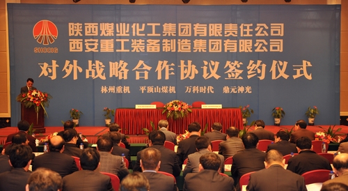 與林州重機集團股份公司簽訂了雙方戰(zhàn)略合作協(xié)議以及對西安重裝澄合煤機公司增資的框架協(xié)議。林州重機集團是河南省明星企業(yè),國內(nèi)最大的民營煤炭綜采機械設備供應商之一,在煤炭綜采設備成套生產(chǎn)能力和鑄造方面有很強的實力。重裝集團與林州重機集團在煤炭開采、裝備制造等領域建立了長期穩(wěn)定的戰(zhàn)略合作伙伴關(guān)系,特別是引進林州集團對澄合煤機公司進行增資擴股,可以說開啟了雙方全面合作的序幕。