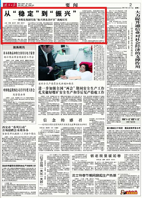 陜西日?qǐng)?bào)2011年2月15日第二版頭條
