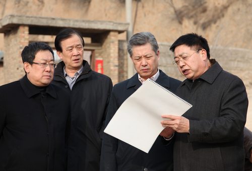 陜煤化集團(tuán)黨委書記、董事長(zhǎng)華煒,總經(jīng)理高仰才在荔枝園小區(qū)建設(shè)工地檢查工作。