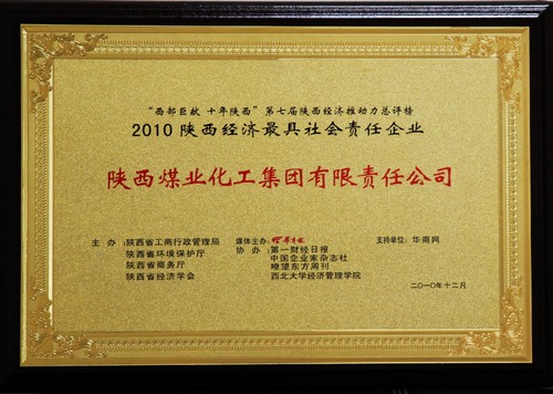 陜煤化集團(tuán)獲評(píng)“2010陜西經(jīng)濟(jì)推動(dòng)力總評(píng)榜”最具社會(huì)責(zé)任企業(yè)