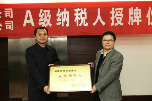 “A級納稅人”是稅務(wù)機關(guān)對陜西煤業(yè)化工集團有限責任公司、陜西煤業(yè)股份有限公司對陜西經(jīng)濟所做貢獻的全面肯定。陜西省納稅信用等級由陜西省國家稅務(wù)局和陜西省地方稅務(wù)局聯(lián)合評定,每兩年評定一次,共分A、B、C、D四個等級,“A級納稅人”是其中的最高級別,在碑林區(qū)的兩萬家企業(yè)中僅有30余家企業(yè)獲此殊榮,獲頒“A級納稅人”企業(yè)將享有稅收免檢等多項優(yōu)惠政策。(黨華蔚)
