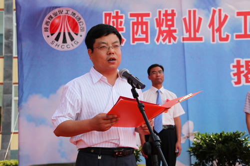 集團公司安監(jiān)部經(jīng)理李文革宣讀陜煤化集團設(shè)立安全培訓(xùn)中心的文件