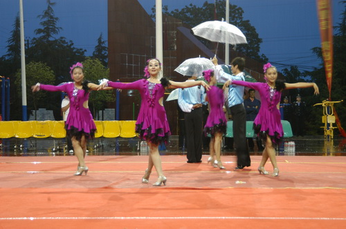 晚上7點(diǎn)整,各代表隊(duì)的隊(duì)員們身著整齊的隊(duì)服邁著鏗鏘的步伐,喊著嘹亮的口號(hào),踏著雄壯的《運(yùn)動(dòng)員進(jìn)行曲》入場(chǎng)。入場(chǎng)式后,參加開幕式人員全體起立奏唱國(guó)歌。