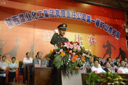 比賽承辦方韓城礦業(yè)公司執(zhí)行董事、總經(jīng)理徐冉忠向來賓致了歡迎詞。他說,在全國(guó)認(rèn)真開展第九個(gè)“安全生產(chǎn)月”活動(dòng)的熱潮中舉辦的這次比賽,目的是弘揚(yáng)集團(tuán)公司“生命至上,安全為天”的安全理念和深化“安全發(fā)展 預(yù)防為主”的一項(xiàng)重要內(nèi)容,同時(shí)也是展示集團(tuán)公司救護(hù)隊(duì)員英勇頑強(qiáng)、雷厲風(fēng)行、善打硬仗的精神風(fēng)貌。韓城礦業(yè)公司將以大賽為契機(jī),勵(lì)精圖治、開拓創(chuàng)新為實(shí)現(xiàn)集團(tuán)公司“十一五”規(guī)劃目標(biāo),推進(jìn)集團(tuán)公司科學(xué)發(fā)展、安全發(fā)展努力奮斗。
