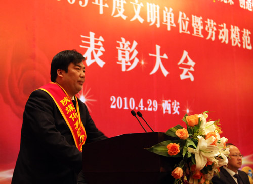 “五一”國際勞動節(jié)前夕,陜煤化集團2008—2009年度文明單位和勞動模范表彰大會4月29日上午在西安世紀金源大酒店隆重召開,大會對兩年來涌現(xiàn)出的31個文明單位和29名勞動模范進行了表彰,并動員集團公司各級組織和全體員工學習先進事跡,弘揚勞模精神,深化文明創(chuàng)建活動,為集團公司實現(xiàn)又好又快發(fā)展而不懈奮斗。會議由集團公司總經(jīng)理高仰才主持。