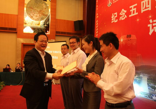 下午2點(diǎn)30分,在《國(guó)歌》和《團(tuán)歌》聲中,集團(tuán)公司五四表彰大會(huì)開(kāi)幕,集團(tuán)公司黨群工作部部長(zhǎng)夏迎廣主持大會(huì)。會(huì)上,集團(tuán)公司黨群工作部副部長(zhǎng)、團(tuán)委負(fù)責(zé)人孫鵬宣讀表彰決定。與會(huì)領(lǐng)導(dǎo)為獲得2008-2009年度集團(tuán)公司“五四紅旗團(tuán)委”和“五四紅旗團(tuán)支部”的先進(jìn)集體頒獎(jiǎng)。集團(tuán)公司黨委副書(shū)記馬富元在表彰大會(huì)上講話,他代表集團(tuán)公司黨委向廣大團(tuán)員和青年朋友們致以節(jié)日的問(wèn)候。他說(shuō),目前集團(tuán)公司35歲以下青年員工3.2萬(wàn)人,青年已成為企業(yè)現(xiàn)實(shí)和長(zhǎng)遠(yuǎn)的生產(chǎn)力,已成為實(shí)現(xiàn)集團(tuán)公司發(fā)展戰(zhàn)略目標(biāo)的一支重要力量。集團(tuán)公司發(fā)展的新形勢(shì)和新任務(wù),為廣大青年員工施展才華提供了廣闊舞臺(tái),同時(shí)也提出了新的更高的要求。他要求青年員工不僅要有追求先進(jìn)的遠(yuǎn)大抱負(fù),更需要有腳踏實(shí)地的實(shí)干精神,要從自身做起,立足崗位,勤勉敬業(yè),扎實(shí)工作,在不同領(lǐng)域創(chuàng)造一流業(yè)績(jī)。他同時(shí)要求集團(tuán)公司各級(jí)黨組織要加強(qiáng)對(duì)共青團(tuán)工作的領(lǐng)導(dǎo)、支持,從思想、組織、工作、學(xué)習(xí)等多方面采取有力措施,充分發(fā)揮黨組織的帶動(dòng)作用,促使基層團(tuán)組織的吸引力、凝聚力和戰(zhàn)斗力明顯增強(qiáng)。