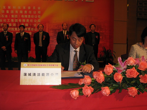 蒲城清潔能源公司總經(jīng)理范立明與美國(guó)空氣產(chǎn)品(中國(guó))投資有限責(zé)任公司簽約