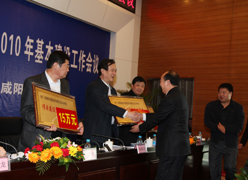 集團(tuán)公司領(lǐng)導(dǎo)為集團(tuán)公司2009年度項(xiàng)目建設(shè)管理先進(jìn)單位頒獎(jiǎng)
