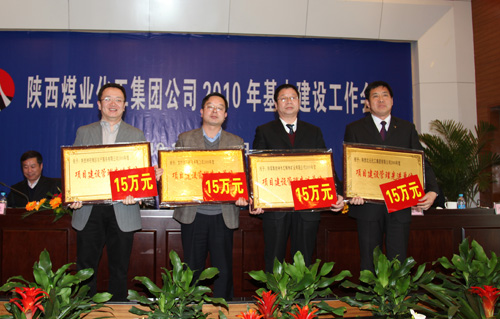 會(huì)議由集團(tuán)公司副總經(jīng)理尚建選主持,彬長(zhǎng)礦業(yè)集團(tuán)公司執(zhí)行董事、黨委書記嚴(yán)廣勞致歡迎詞。會(huì)上,還對(duì)神南公司張家峁煤礦等8個(gè)項(xiàng)目集團(tuán)公司2009年度項(xiàng)目建設(shè)管理先進(jìn)單位、榆陽煤礦副斜井工程等11個(gè)2009年度集團(tuán)公司優(yōu)質(zhì)工程進(jìn)行了表彰獎(jiǎng)勵(lì)。神南礦業(yè)公司、神木煤化工公司、建設(shè)集團(tuán)三家單位做了表態(tài)發(fā)言。