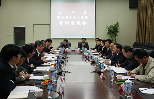 3月19日上午,漢中市委副書(shū)記、市政府市長(zhǎng)胡潤(rùn)澤,市委常委、市政府副市長(zhǎng)邢天虎帶領(lǐng)漢中市及下屬縣有關(guān)人員來(lái)到陜西煤業(yè)化工集團(tuán)公司,與集團(tuán)公司董事長(zhǎng)、黨委書(shū)記華煒,副總經(jīng)理尚建選、董事吳繼亮及集團(tuán)公司有關(guān)部門(mén)負(fù)責(zé)人,陜煤化建設(shè)集團(tuán)、陜南投資開(kāi)發(fā)公司負(fù)責(zé)人進(jìn)行了合作洽談。