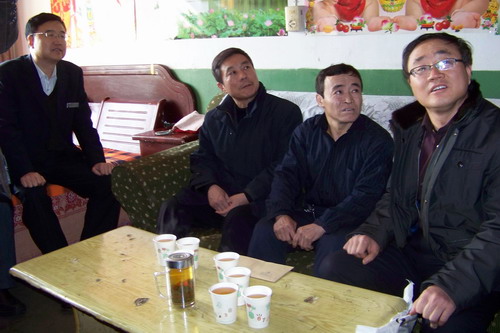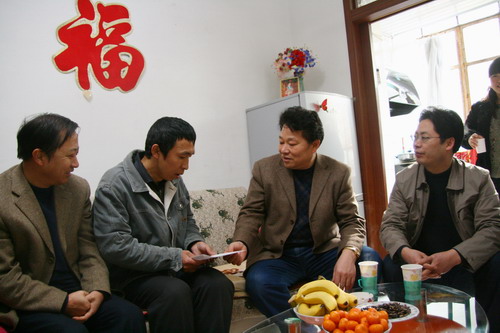 副總經(jīng)理閔龍(左二)在惠九水的家中慰問