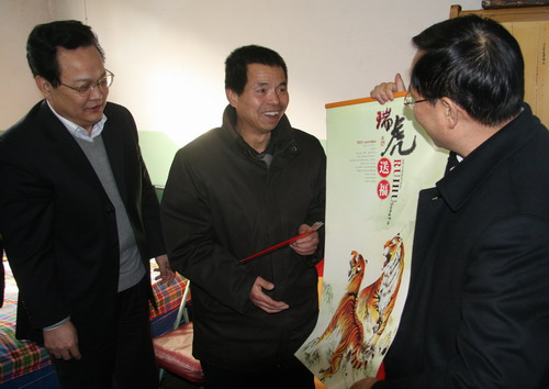 2月7日,陜西煤業(yè)化工集團黨委書記、董事長華煒和總經(jīng)理高仰才一行來到銅川礦區(qū)慰問送溫暖。在銅川礦務局領(lǐng)導的陪同下,來到桃園礦退休傷殘職工雷金成的家中,看望了雙目失明的雷金成,送去了慰問金和米面油。華煒、高仰才親切地詢問雷金成兩個正在念大學的女兒的生活學習情況,鼓勵她們好好學習。