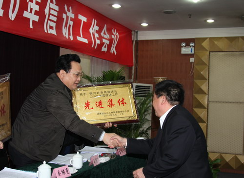 集團(tuán)公司黨委副書記馬富元為2009年信訪工作先進(jìn)集體頒發(fā)獎牌