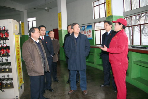 集團(tuán)公司副總經(jīng)理朱周岐(左二)在朱家河礦井下檢查安全質(zhì)量標(biāo)準(zhǔn)化工作。
