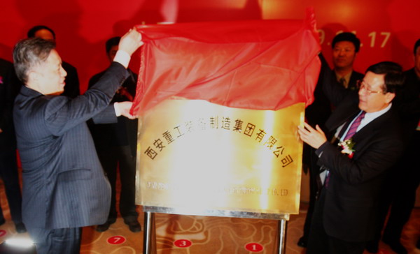 副省長(zhǎng)吳登昌和陜西煤業(yè)化工集團(tuán)董事長(zhǎng)、黨委書記華煒為西安重工裝備制造集團(tuán)有限公司揭牌