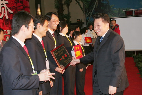陜煤化集團公司副總經理朱周岐為獲得一等獎的渭化集團公司頒獎