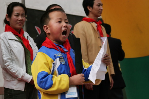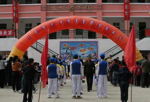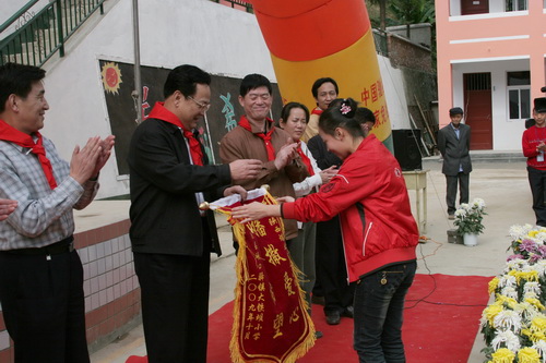 落成典禮上,少先隊員首先向出席活動的嘉賓敬獻了紅領(lǐng)巾,省人大人事代表選舉工作會副主任文力和略陽縣教育局局長作了熱情洋溢的講話和答謝辭,少先隊代表作了發(fā)言,大鐵壩小學校長代表學校向集團公司敬獻了鮮紅的錦旗,錦旗上寫著表達他們感恩的心語:“播撒愛心,情獲希望”。