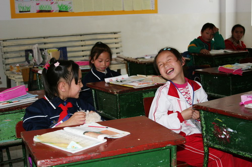 瞧!同學們在寬暢、明亮、舒適的教室里多高興。