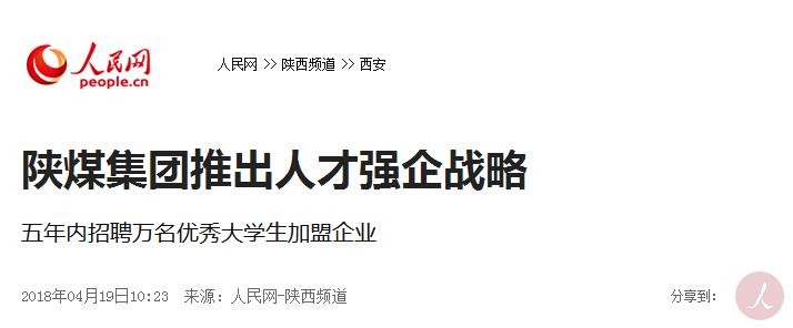 陜煤集團(tuán)的萬人招聘計劃,就是從2018年到2022年,集中用五年時間,采取校園招聘和社會化選聘的方式,招錄全日制一類本科及以上學(xué)歷的院校畢業(yè)生1萬人,進(jìn)一步優(yōu)化集團(tuán)人才隊伍結(jié)構(gòu)和做好人才培養(yǎng)儲備。