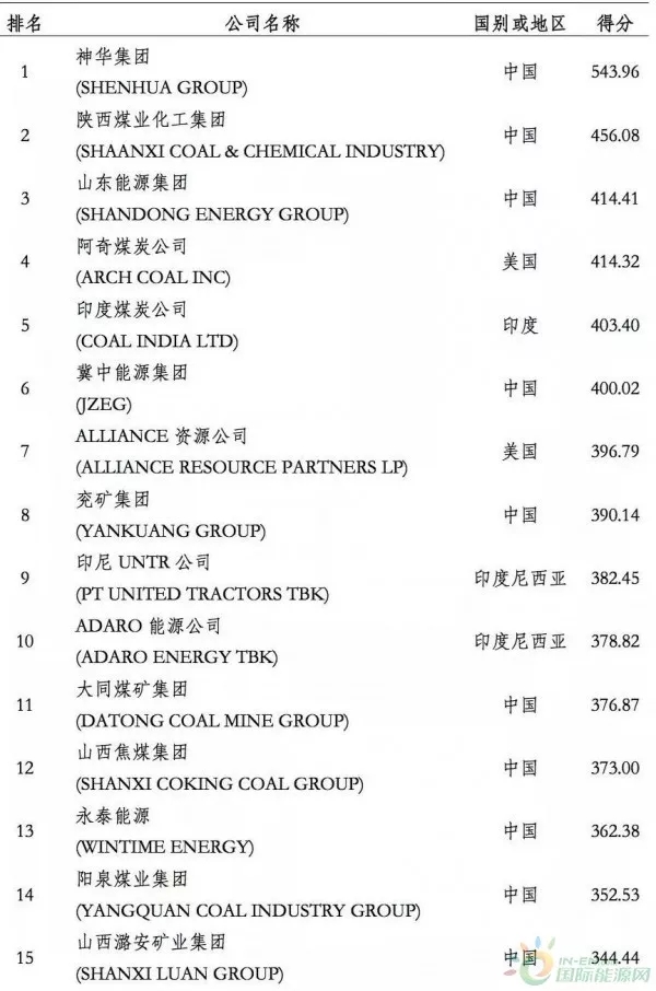 煤炭企業(yè)全球競爭力排行榜 30 強