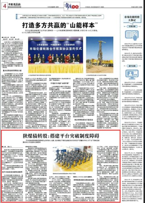 2017年4月至今,國家發(fā)改委等相關(guān)部門先后考察了陜煤集團(tuán)債轉(zhuǎn)股工作,并給予高度評價。中國銀行間市場交易商協(xié)會深入調(diào)研后,希望在全國范圍內(nèi)推廣該集團(tuán)債轉(zhuǎn)股經(jīng)驗。