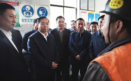 10月23日,陜西省委常委、省委統(tǒng)戰(zhàn)部部長、副省長姜鋒,深入蒲白西固煤業(yè)對安全生產(chǎn)工作情況進行檢查調(diào)研。省政府副秘書長張宗科,省安監(jiān)局局長王昊文、省交警總隊政委李昌,省交通廳副廳長丁勝仁,省煤管局局長陳永昌,渭南市、白水縣政府及有關(guān)部門領(lǐng)導(dǎo)隨行。蒲白礦業(yè)公司黨委書記、董事長沈顯華,總經(jīng)理張維新等陪同檢查。