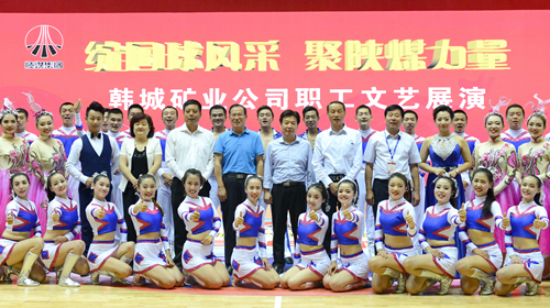 隨后,舉行了以“綻國球風(fēng)采 聚陜煤力量”為主題的韓城礦業(yè)公司職工文藝展演。韓城礦區(qū)文藝愛好者登臺助興,為現(xiàn)場觀眾表演了開場舞《歡慶鑼鼓》、獨唱《再唱歌給黨聽》、《我和我的祖國》、詩朗誦《再出征》、四人聯(lián)唱《韓城歡迎您》、快板《韓城礦業(yè)展風(fēng)采》、舞蹈《韓城秧歌》、團(tuán)體操《世紀(jì)的約定》等文藝節(jié)目。精彩的節(jié)目展現(xiàn)了陜煤人“喜迎十九大,共赴新征程”的豪邁和激情,烘托出韓煤人追趕超越的精氣神,贏得了觀眾的陣陣掌聲。
